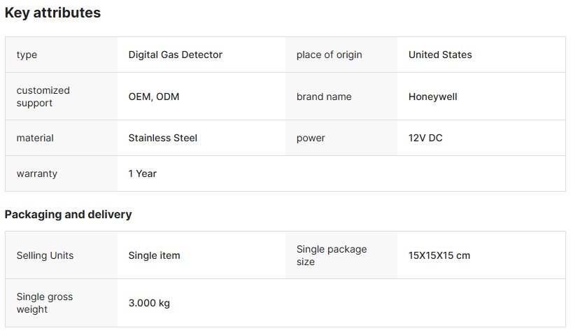 Honeywell Gas Detector City Sensor for Carbon Monoxide Hydrogen Sulfide Oxygen Combustible Gas Methane