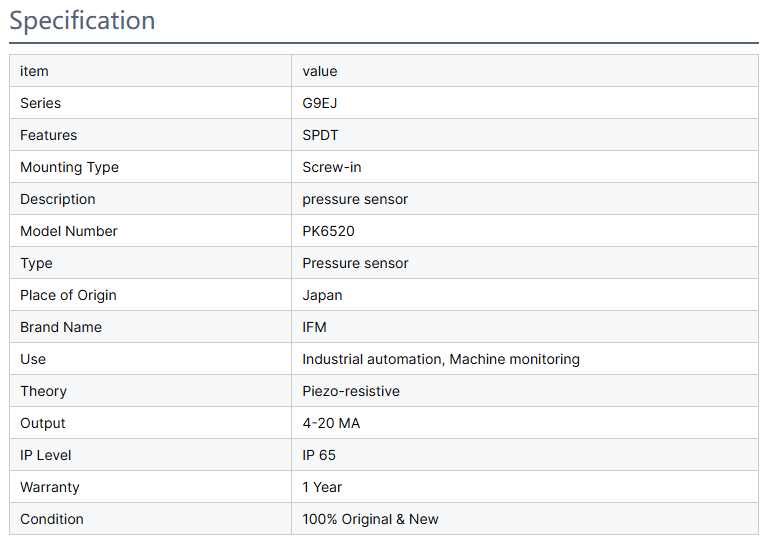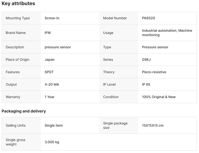 IFM PK6520 Intuitive Switch Point Pressure Sensor Original & New Ifm Pressure Switch