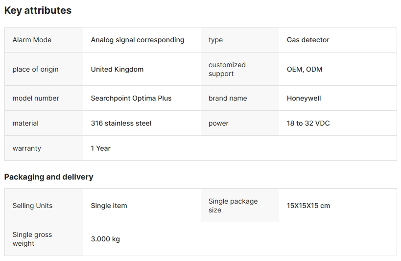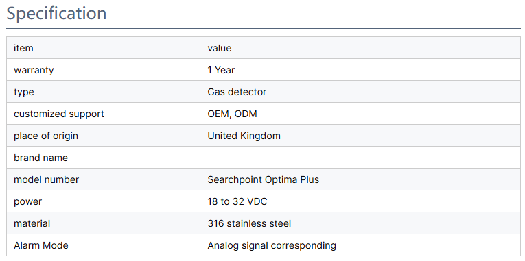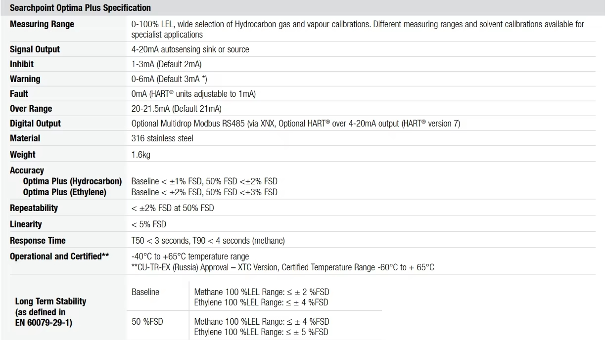 Optima Plus Industrial Hydrocarbon Gas Detector with 3/4NPT Sensor 316 Stainless Steel Analog Alarm Signal for Gas Analyzers