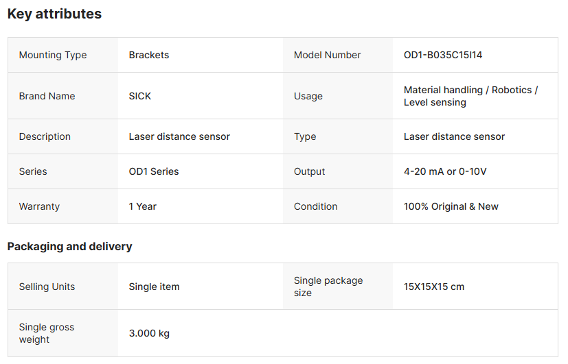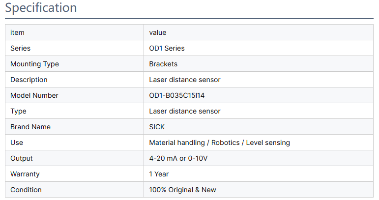 SICK OD1-B035C15I14 German Model Laser Distance Sensor for Safety Applications