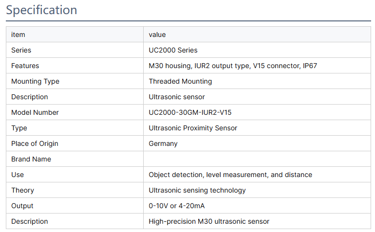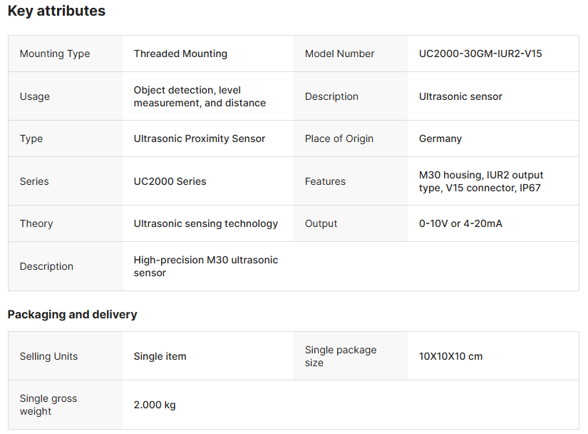 UC2000-30GM-IUR2-V15 High-Precision Ultrasonic Sensor with Temp Compensation & Sync Input for PLC Integration